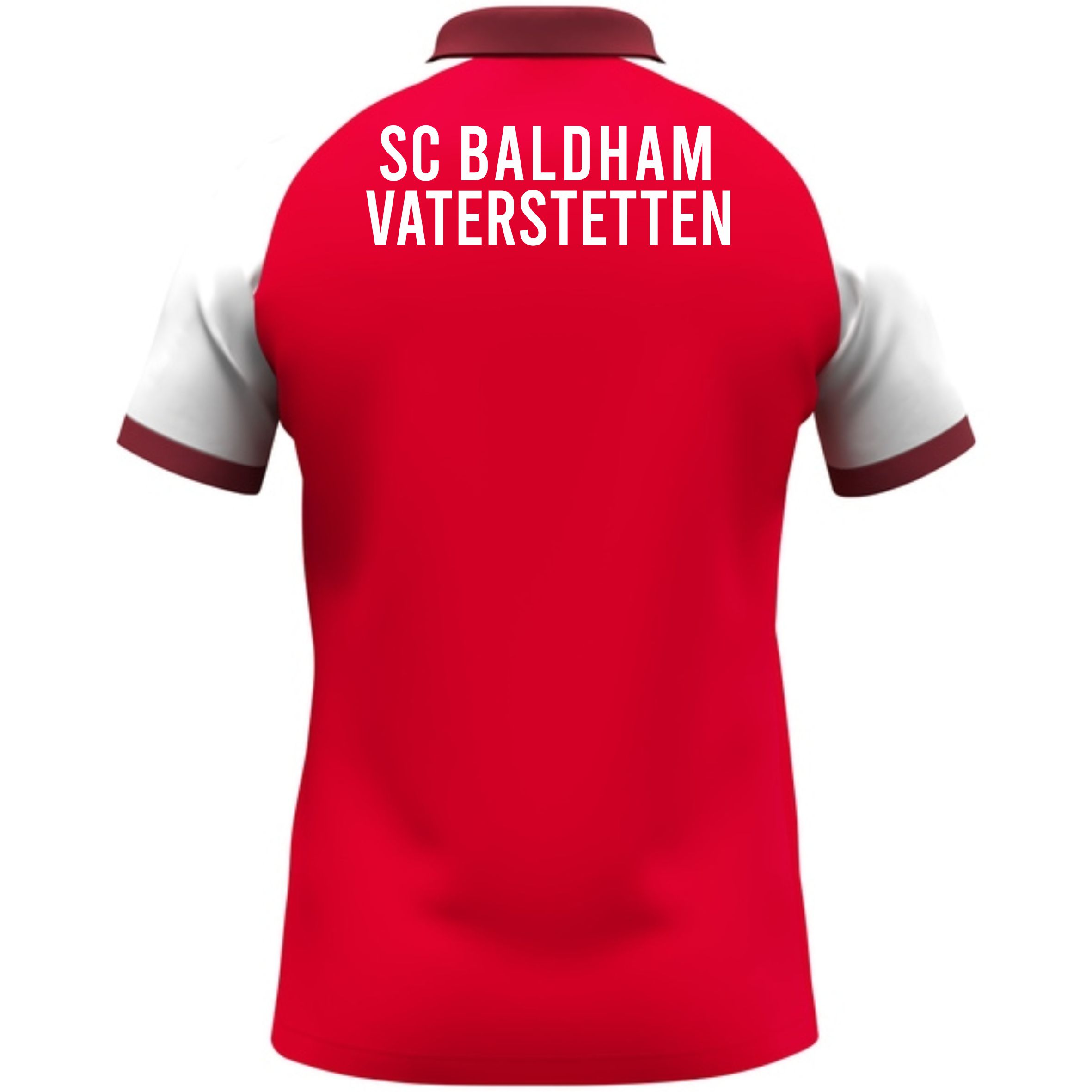 Polo mit Vereinslogo auf der Brust und Vereinsname am Rücken.